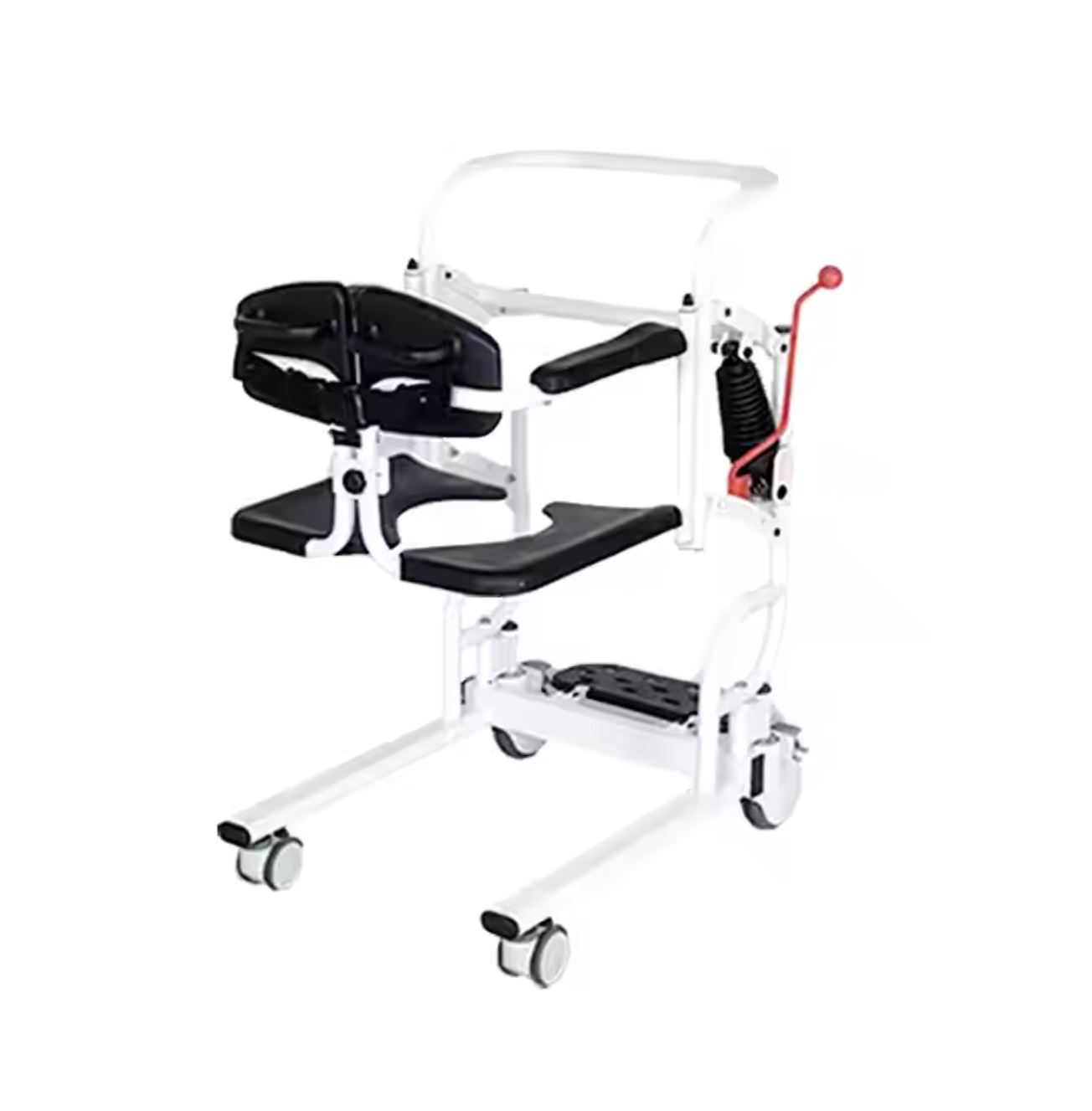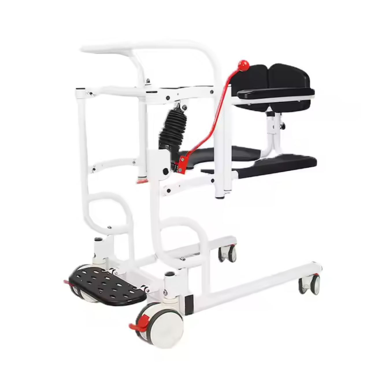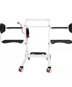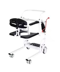 It’s a Portable Patient lift Transfer Chair with a Potty Bucket, 4-in-1 function (wheelchair, shower chair, commode chair, lifting chair), Elderly Transfer Lift with 180° Split scoop up Seat and Removable pan.