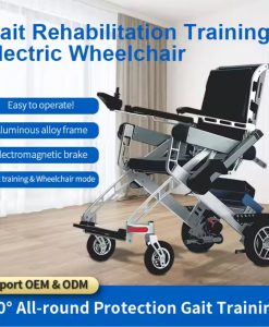 The gait training electric wheelchair is suitable for rehabilitation training of bedridden patients with lower limb mobility impairment. One-button switching between electric wheelchair function and auxiliary walking function, it is easy to operate, with electromagnetic braking system that can automatic braking after stop running, safe and worry-free.